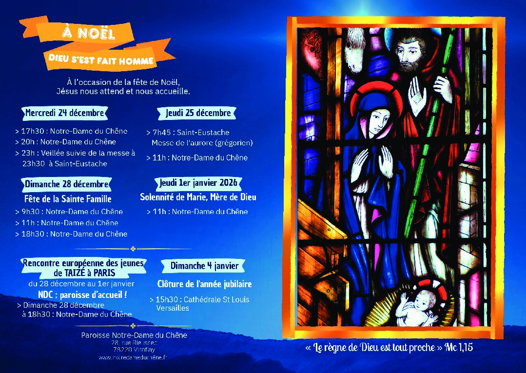 Mercredi 10 décembre de 17h15 à 17h45 à Notre-Dame du Chêne (28, rue Rieussec).